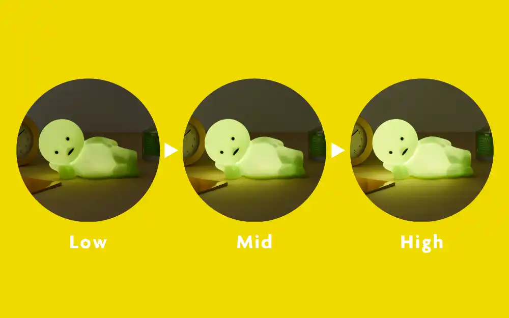 「SMISKI Touch Light」本体をタップすることで、ライトの調光ができます。 Low-Mid-Highの3段階調光が可能で、あなたのお部屋をやさしく照らしてくれます。 |