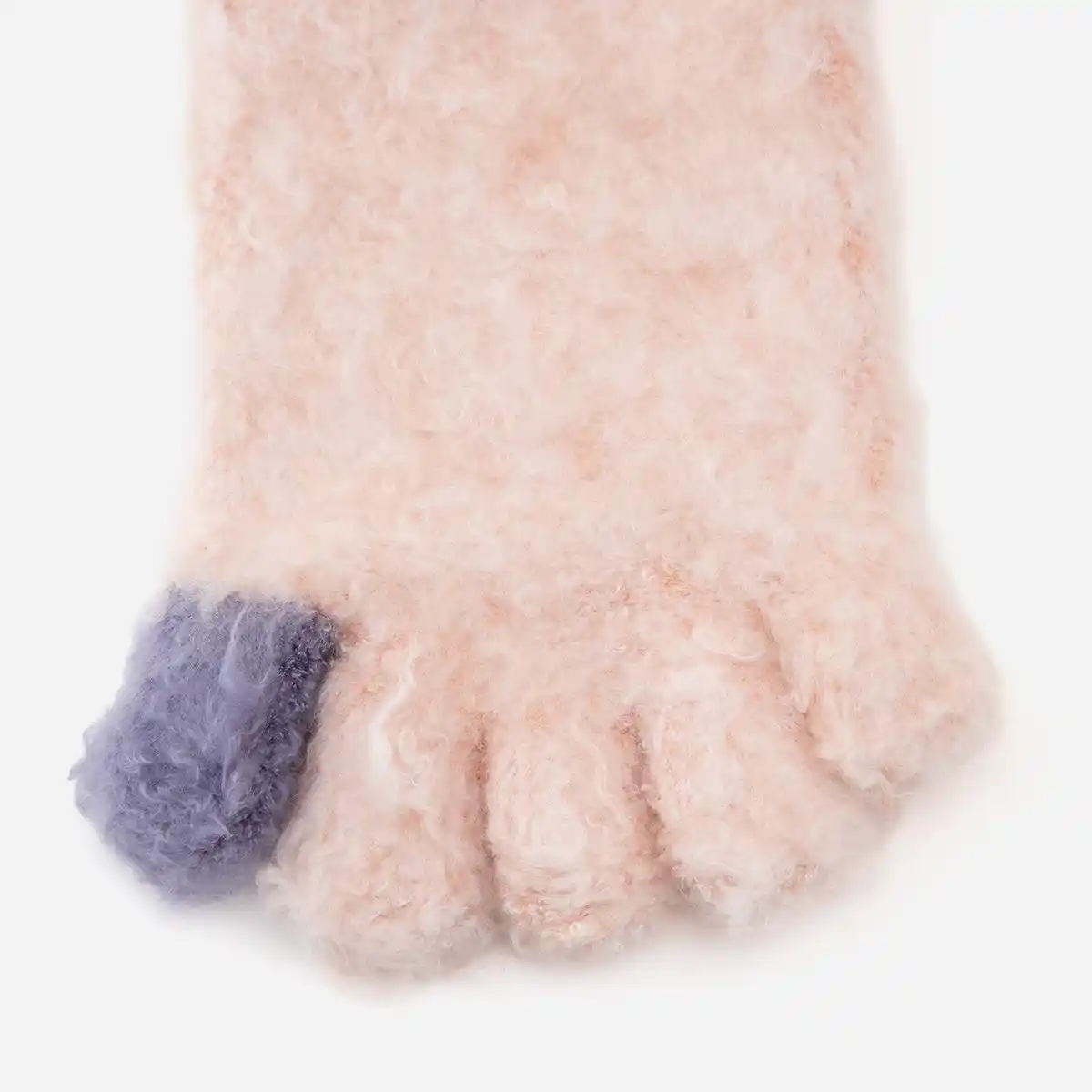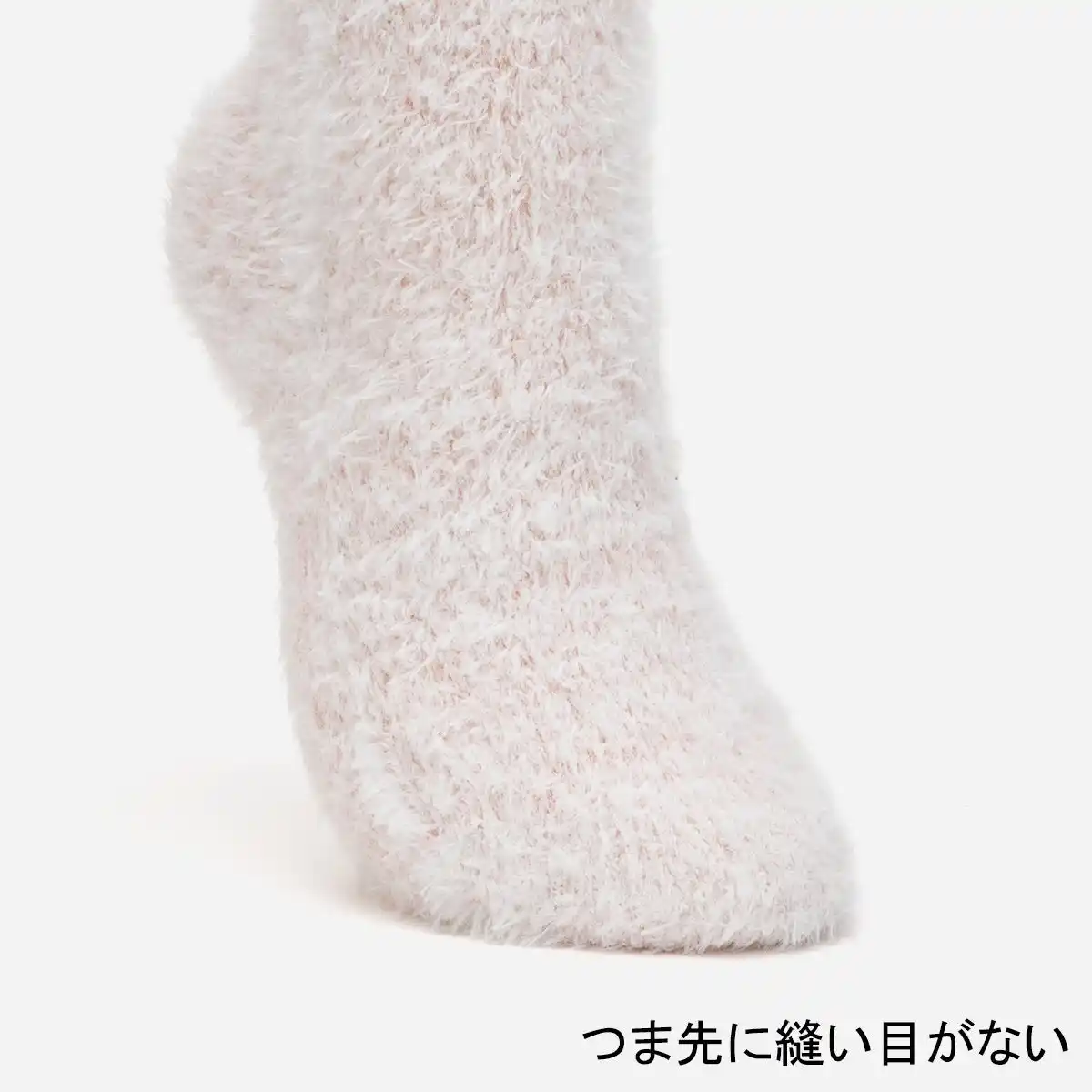 シャギーヤーンを使った、ふわもこなデザインがかわいらしいルームソックスです。つま先の縫い目がないフラット仕様なので、“ゴロゴロ感”も無く、肌当たり良く履いていただけます。 |