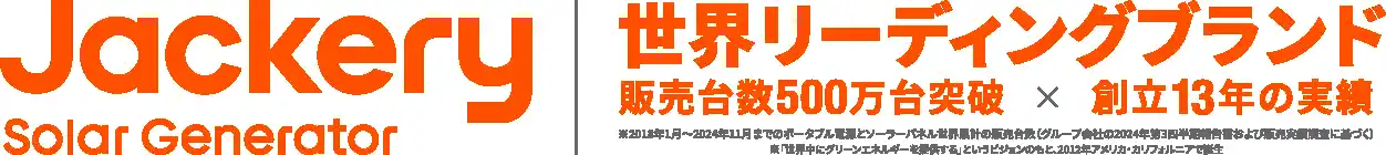2012年、アメリカ・カリフォルニア。「グリーンエネルギーをあらゆる人に、あらゆる場所で提供する」という、壮大なビジョンのもと、私たちJackery は、誕生しました。2016 年には、ブランド初となるアウトドア用ポータブル電源を発売。さらにその2 年後には、ブランド初のポータブルソーラーパネルを開発しました。 |