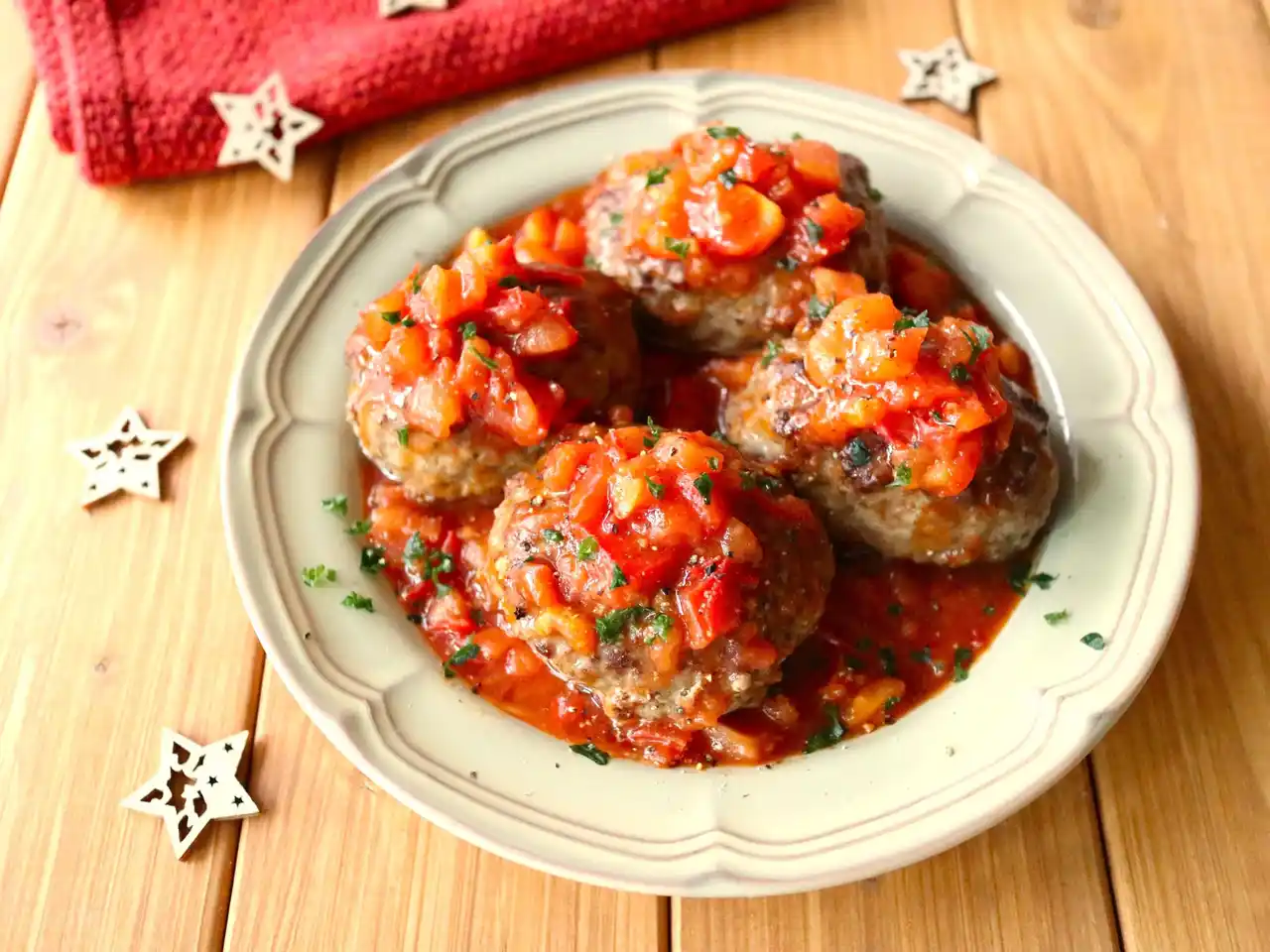 うま味閉じ込める!【ガーリックトマトハンバーグ】パン粉牛乳不要 |