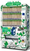 飲み物を販売するだけでなく、内部に組み込まれた特殊な吸収材によって、大気中のCO2を回収するという機能を備えた、国内唯一の自動販売機です。吸収材は、加工や輸送に伴うCO2排出量を上回るCO2吸収効果を持ち、1台当たりの年間CO2吸収量は、稼働電力由来のCO2排出量の最大20%、スギ(林齢56-60年)に置き換えると約20本分に相当します。2023年6月に展開を開始し、2025年9月末時点で全国に約3,700台を設置しています。 |