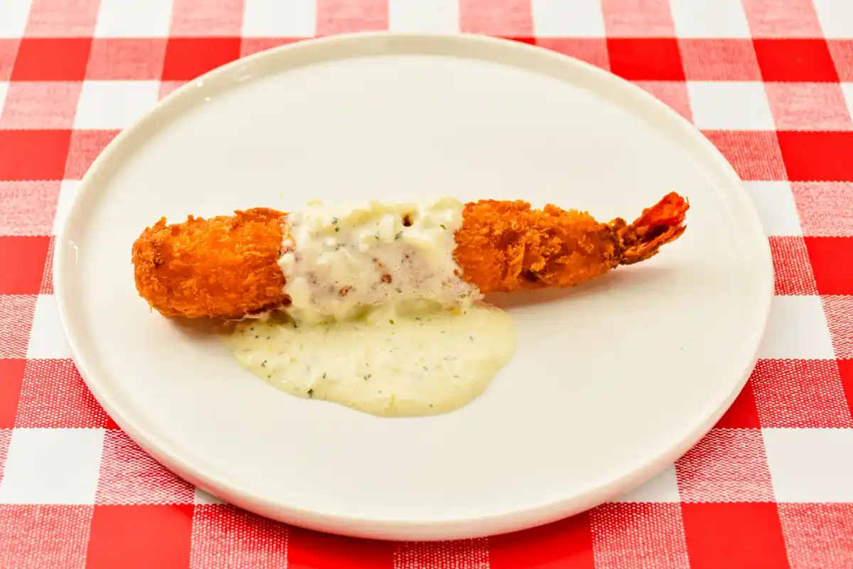 | 太く食べ応えのあるぷりぷりのエビを使用し、しっかりとした衣で揚げた一品はサクサクとした食感が特徴。ナポリタンとも相性抜群のタルタルソースを添えて提供します。 | ||||||||||||||||||
