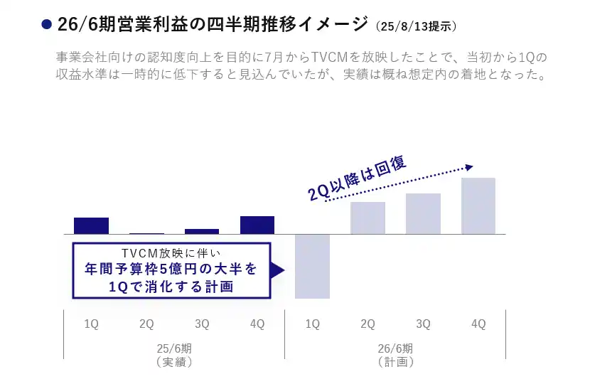 売上高は好調なスキルシェアが牽引し、前年同期比19.2%増の1,456百万円となりました。一方で営業利益は、2025年6月期通期決算発表時にお示しした計画に従い、広告宣伝費を集中的に投下した結果、△255百万円(前年同期91百万円)と減益での着地となりましたが、会社計画に沿った進捗状況でございます。 |