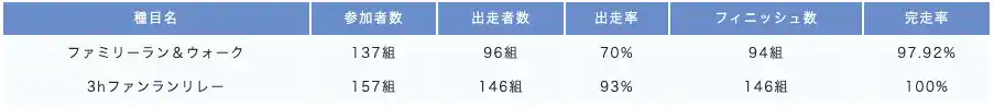 だきました。会場では3 時間のファンランリレーやファミリー種目、ウォーキングが行われ、ス |