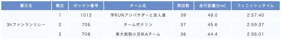 楽しみました。正午からは、メイン種目である3 時間ファンランリレーがスタート。チームでた |