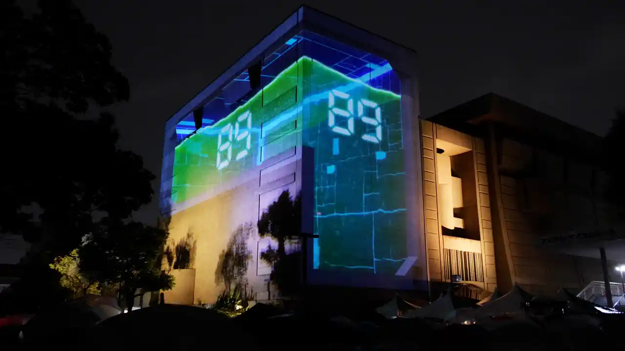 西宮市民会館(アミティ・ベイコムホール)東側・北側壁面に映像投影 |