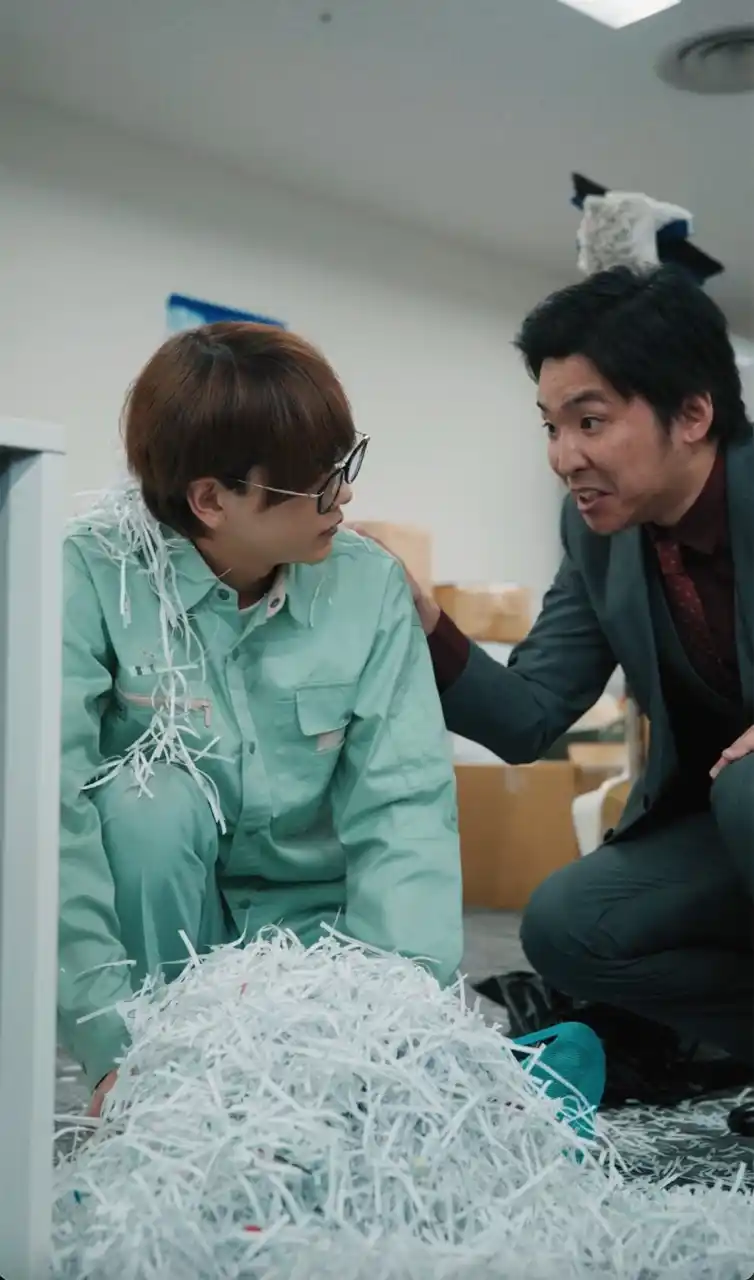 ドラマの中からいくつかの見どころシーンをご紹介!中島さんが清掃員姿でシュレッダーの紙ゴミにまみれていたり頭上から水をかけられていたりする衝撃的なシーンや、小西さんが神妙な面持ちで話を聞いているようなシーン、さらには中島さんと小西さんが車内で何かを見ながら密談している様子まで、一体どのような場面なのかぜひ配信でご覧ください。 |