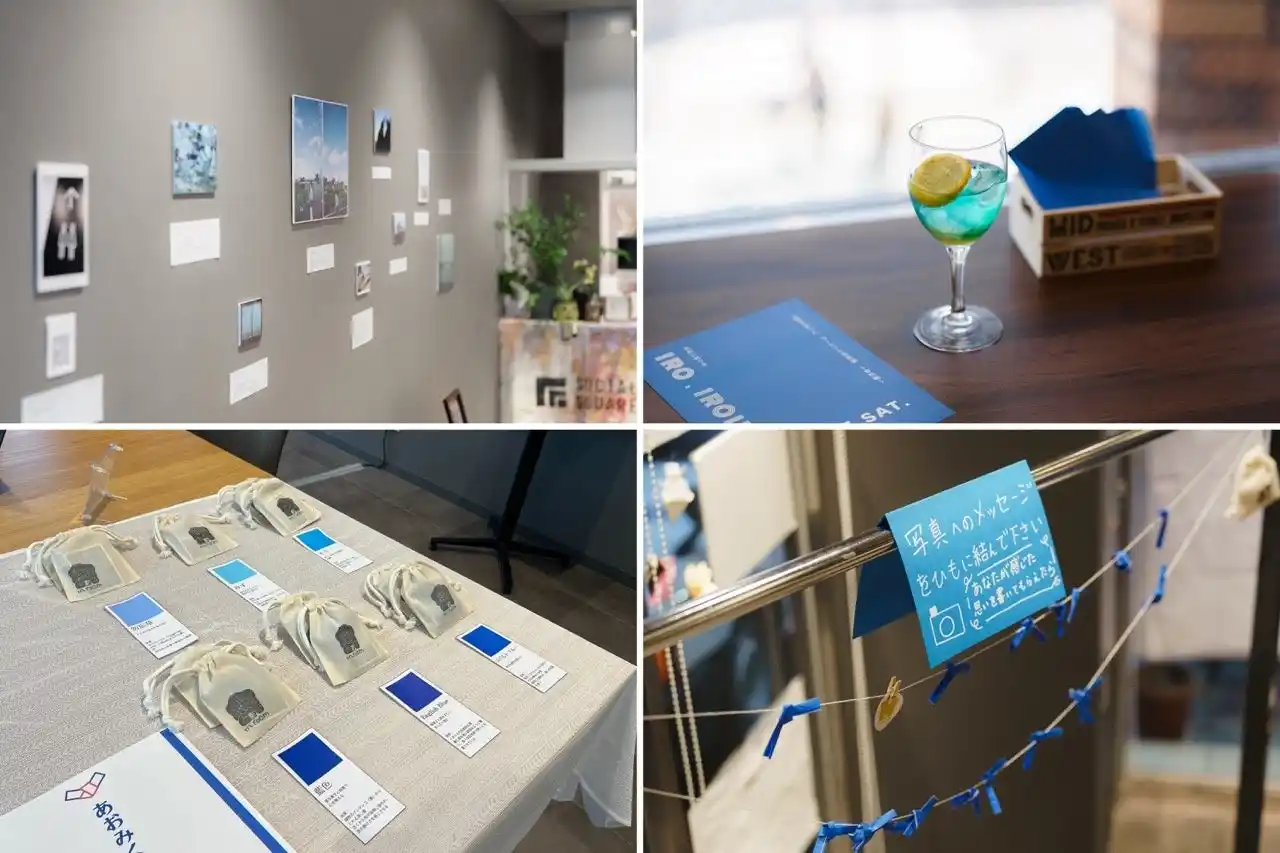 2025年9月に開催された青色編では、ソーシャルスクエアの利用者や一般の方々から集まった写真を展示。青をイメージするコーヒーやドリンク、複数の青色から直感で選べるおみくじなどを企画しました。 |