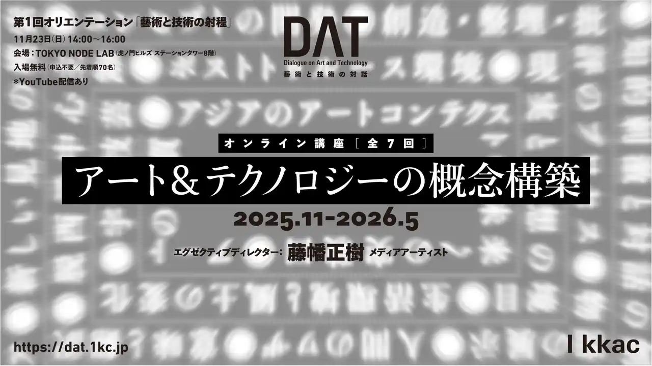株式会社イッカク(所在地:東京都台東区、代表取締役社長:廣田ふみ)では、メディアアートやデジタルアート等のアート&テクノロジー分野の専門家育成を目的とした新プロジェクト「藝術と技術の対話(DAT)」(通称:ダット)を2025年11月より始動します。 本プロジェクトは、文化庁の補助金により独立行政法人日本芸術文化振興会に設置された「文化芸術活動基盤強化基金」による助成を受けて実施するものです。 今後3年にわたり、講座や調査研究、ブートキャンプ、国内外での展覧会の企画・実施、シンポジウム等の多角的なプログラムを展開する予定です。 エグゼクティブディレクターには、慶應義塾大学環境情報学部や東京藝術大学大学院映像研究科の立ち上げに関わり、UCLAをはじめとした海外でも教鞭をとってきたメディアアーティストの藤幡正樹が就任します。 プロジェクトの第1弾として、全7回からなるオンライン講座をスタート。初回となるオリエンテーションを2025年11月23日(日)に開催します。今後、国内外から多彩なゲストを迎え、同分野のアーティストやプロデューサー、キュレーター、研究者等の専門家を育成する新たな教育基盤を構築していきます。 |