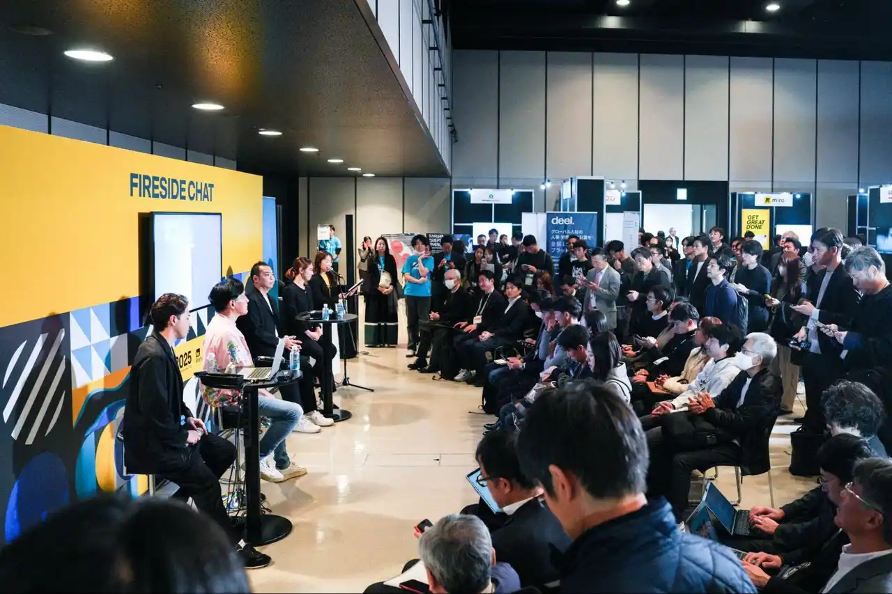 会場の入口付近に位置するSKY STAGEでは、来場者を最初に迎えるステージとして、多くの人々が立ち寄り熱気に包まれ、FIRESIDE CHATは、まるで焚き火を囲むような近い距離感で臨場感のあるセッションステージとなりました。 |