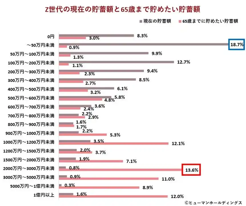 ●現在の貯蓄は少額であるが、65歳までに「2,000万円以上」を目標とする人が多く、資産形成への意識の高まりが見られる |