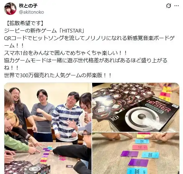 ジーピーの新作ゲーム「HITSTAR」 QRコードでヒットソングを流してノリノリになれる新感覚音楽ボードゲーム!! |