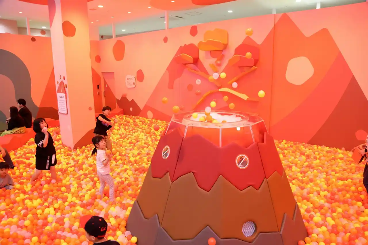 マグマが噴火する火山をイメージしたエリア。ボールが飛び出す火山があるボールプールで、エネルギーを発散できます。 |
