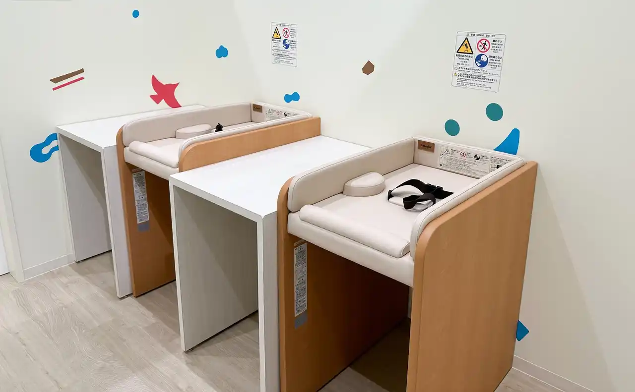 施設内には、おむつ交換ベッド、給湯器、授乳スペースを備えたベビールームを完備しており、赤ちゃん連れのファミリーがゆったりと快適にお過ごしいただけます。 |