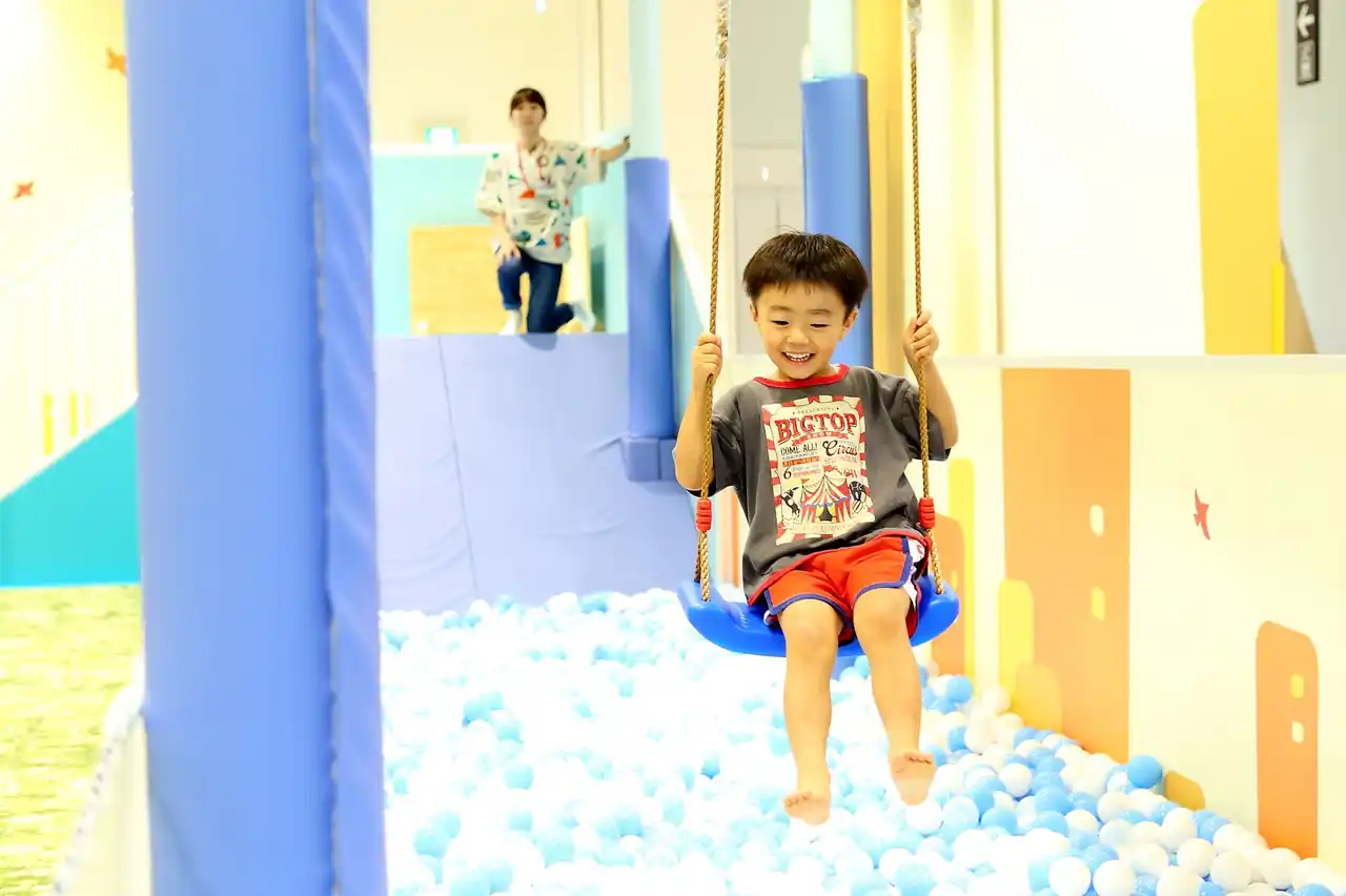 0~2歳専用のボールプー ルや遊具があり、お子さまも安心して遊べます。 |