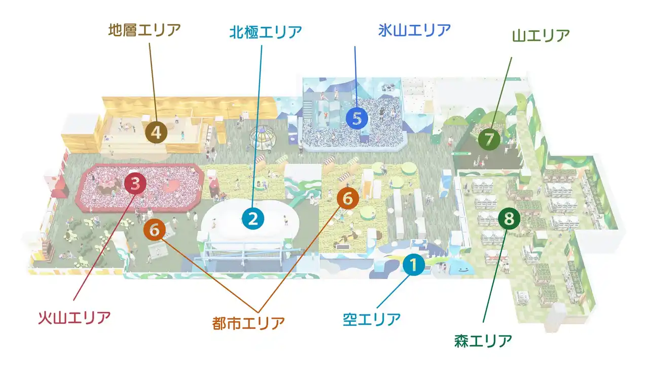 ●ちきゅうのにわの8つのエリアと地球の面白さに満ちた遊びのコンテンツ |