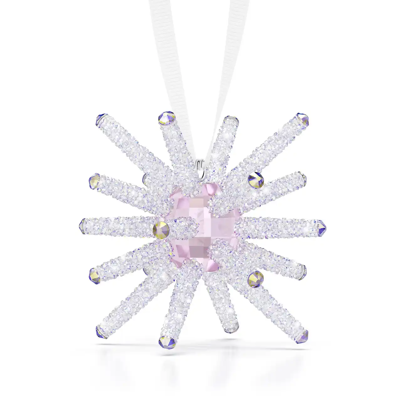 この壮麗なオーナメントは、グリンダの杖の頂点に輝く星からインスピレーションを得ており、フルカットクリスタルとクリスタルロックスでその輝きを余すところなく表現。443面のファセットを持ち、ドラマティックなピンクのセンターピースを特徴とするデザインは、ホワイトのグログランリボンで吊るされ、ウィキッドファンにとって魅惑的な記念品やギフトとなります。 |