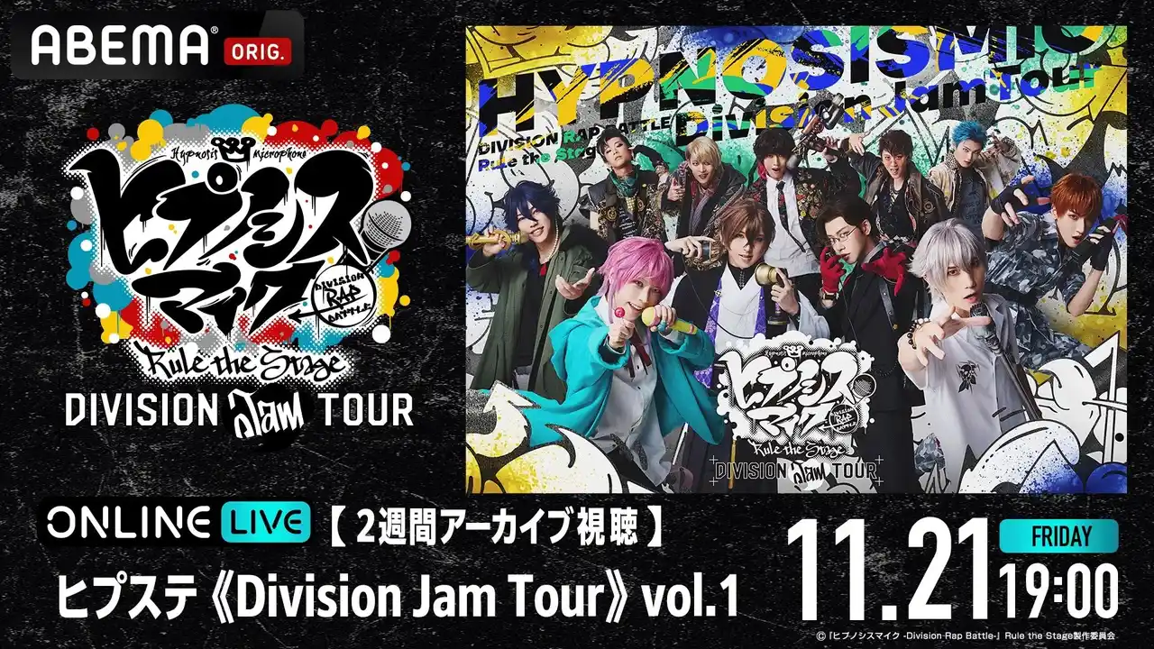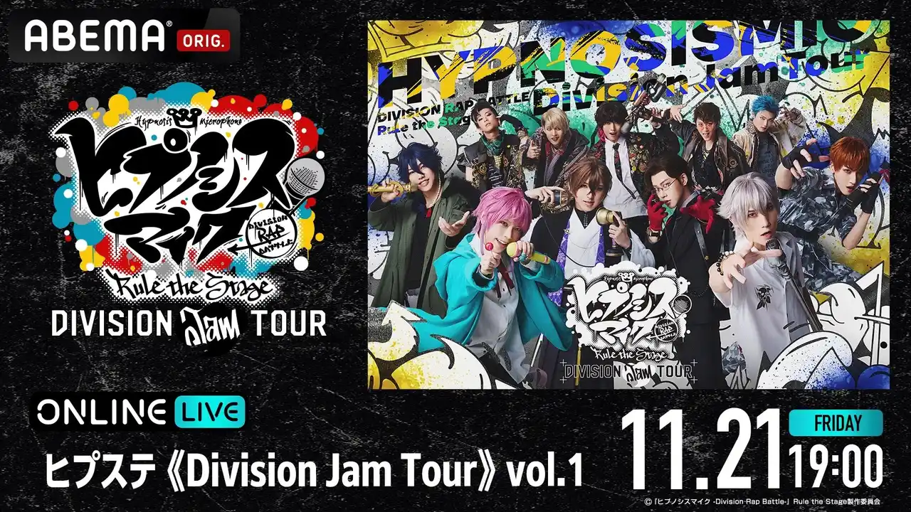【ABEMA】 全国を巡る「ヒプステ」ライブツアー「ヒプステ《Division Jam Tour》vol.1」の11月21日(金)19時公演を「ABEMA PPV」にて独占生放送決定!