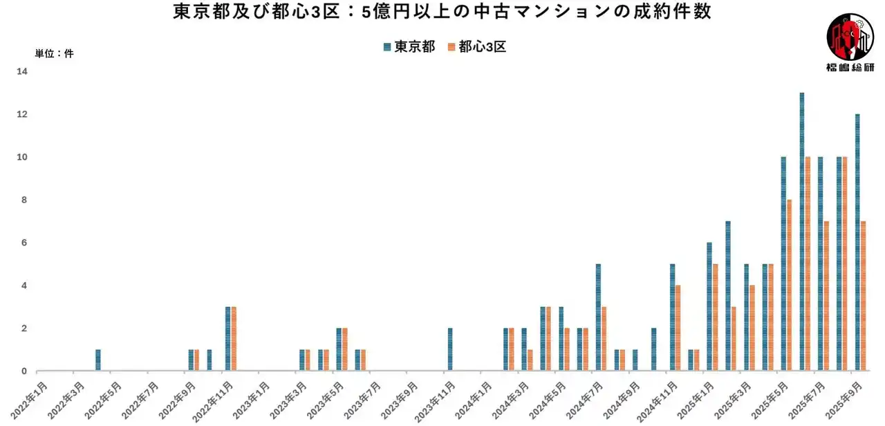 | グラフ4:東京都及び都心3区:5億円以上の中古マンションの成約件数 | ||||||||||||||