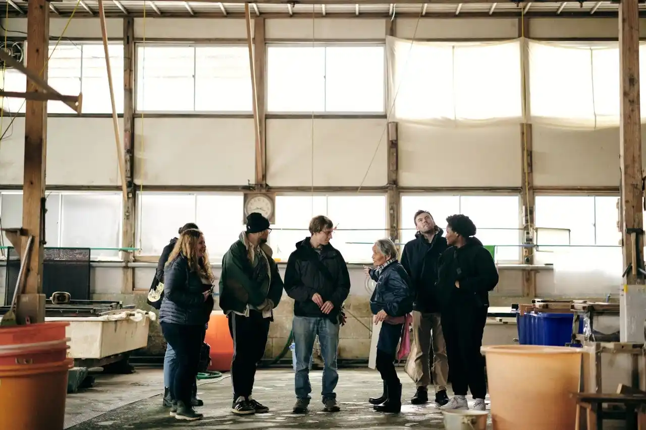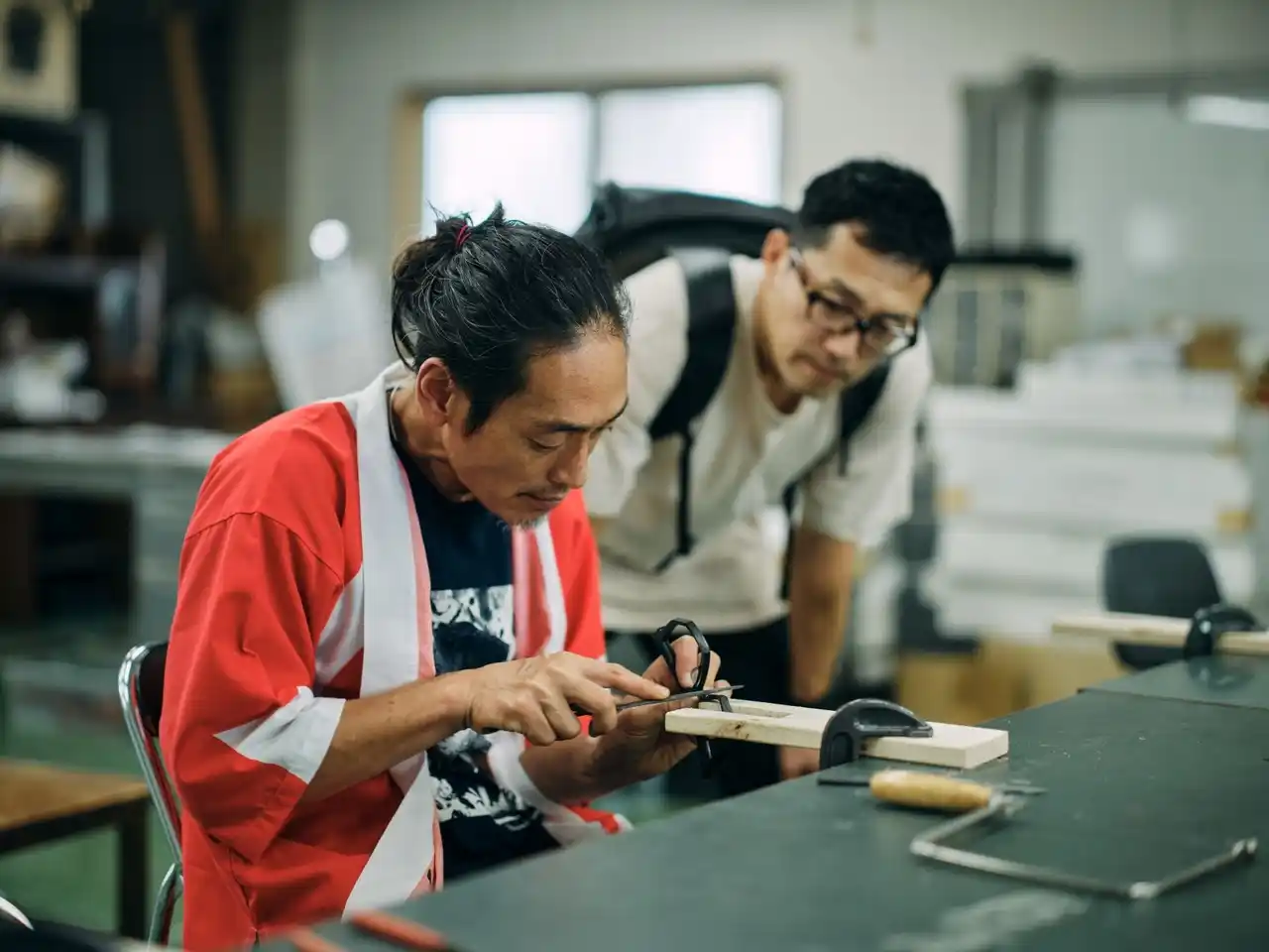 越前鯖江は、越前漆器・越前和紙・越前打刃物・越前箪笥・越前焼・眼鏡・繊維の7つの産業が半径10km圏内に隣り合う、国内でも稀有な“ものづくりの集積地”です。 工房では、技術に触れたり、職人と対話したりと、産地のリアルな空気を肌で感じられる時間が生まれました。 |