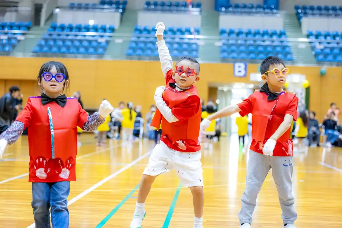 | また、英語チャンツ合戦などは、“団結力の結晶”です。 声を揃え、動きを合わせ、英語で仲間を応援する、その一体感は、表現することを恐れない子どもたちが集まるアライブだからこそ生まれる光景です。母語(母国語)ではない、「英語」という共通の言語により、子どもたちの間に“文化を超えた絆”が育まれます。さらには、完成度の高いダンスパフォーマンスでも、全員で息を合わせ、最後の振りがピタッと揃う瞬間は、子どもたちが互いに築いた信頼関係の証といえます。とても、短い準備期間とは思えない完成度に、観客からも驚きの声が上がります。 | ||||||||||||||