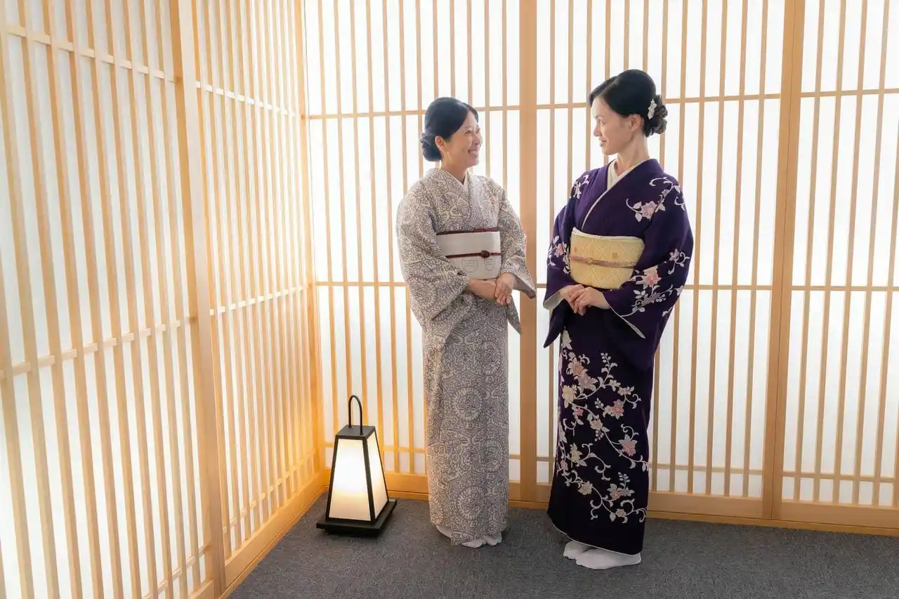 | 着物の着付けと茶道体験が同じ建物内で行えるため、移動の手間がなく、観光の合間にも最適。英語・中国語・韓国語対応で、海外からの旅行者も安心して参加できます。呉服屋が運営する着物レンタル店なので、サイズ展開も豊富です。海外のご友人も安心してご利用いただけます。 | |||
