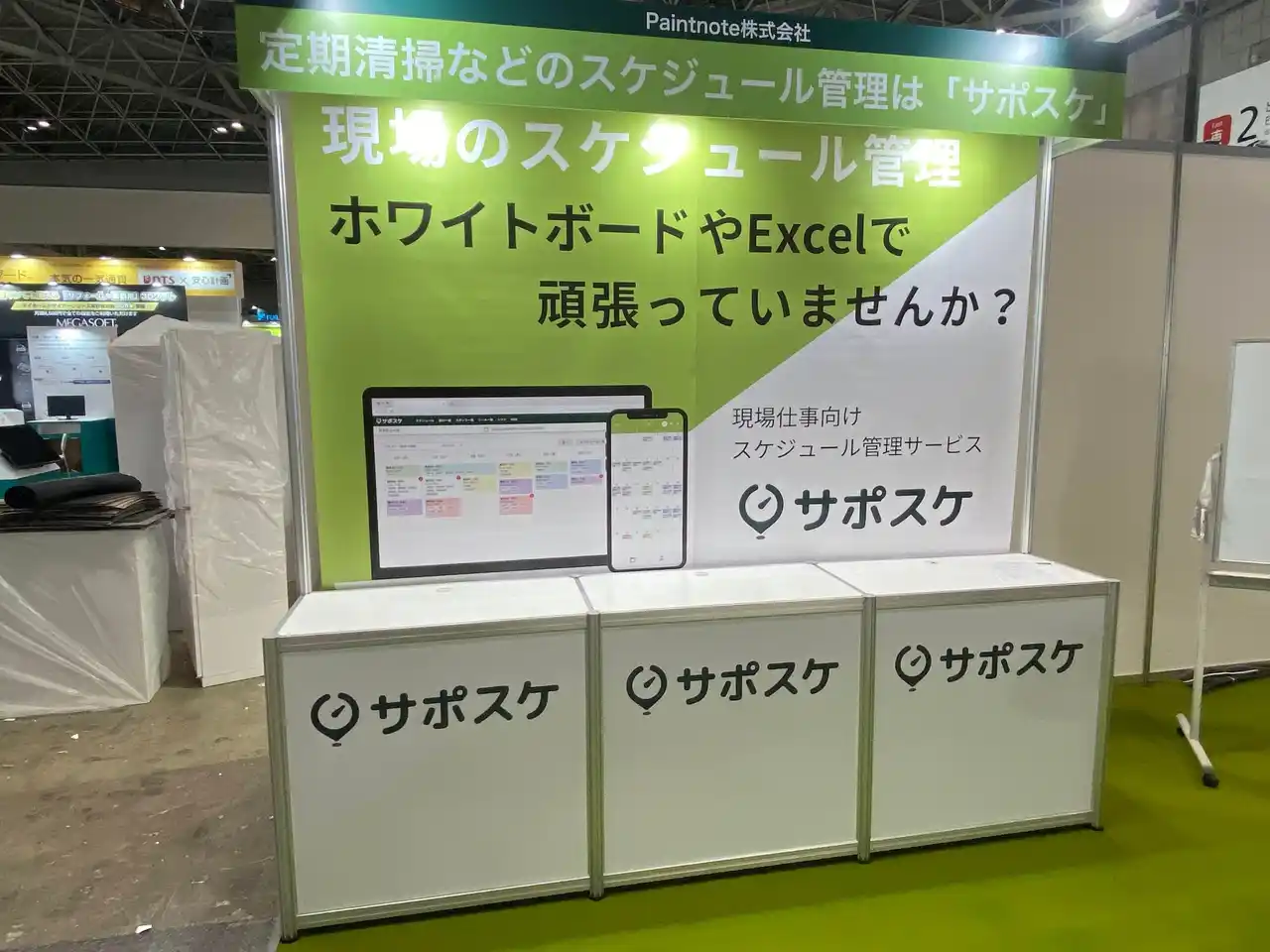現場仕事に特化したスケジュール管理クラウド「サポスケ」を提供するPaintnote株式会社(本社:東京都品川区、代表取締役:藤井友輝)は、2025年11月19日(水)から21日(金)までの3日間、東京ビッグサイトで開催されるビルメンテナンス業界国内最大級の展示会「ビルメンヒューマンフェア&クリーンEXPO 2025」に出展することをお知らせいたします。 当社は「サポスケ」リリース初年度の2023年より毎年出展しており、今回で3年連続の出展となります。