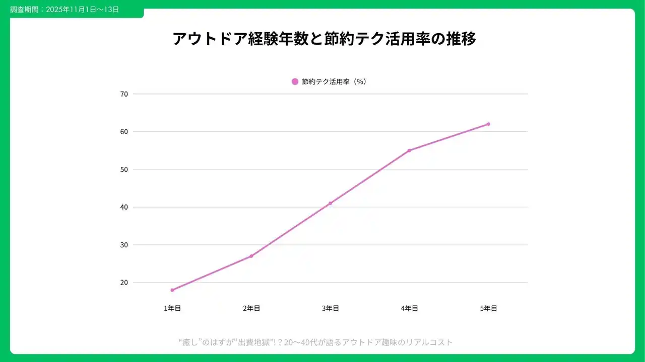 増え続ける出費に対し、利用者が実践している“節約テク”も調査しました。 レンタル・中古活用、オフシーズン割、会員制割引など、多様な工夫が見られます。 |
