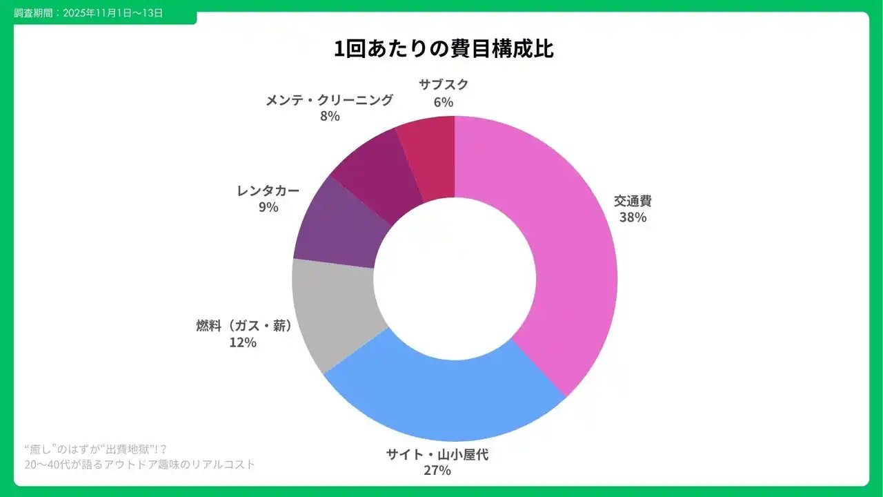 キャンプ場・山小屋代:27%(平均¥4,200/回)
