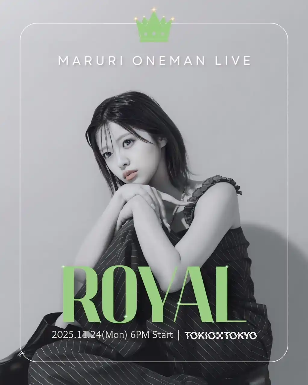 Z世代を中心に圧倒的な支持を集める女性シンガー・まるりが、ワンマンライブ「MARURI ONEMAN LIVE ~ROYAL~」を開催します。 “高貴”“上品”をテーマに掲げた本公演では、アーティストとして新たなステージに立つまるりが、上質なサウンドとパフォーマンスで観客を魅了。渋谷・TOKIO TOKYOにて、特別な一夜をお届けします。 |