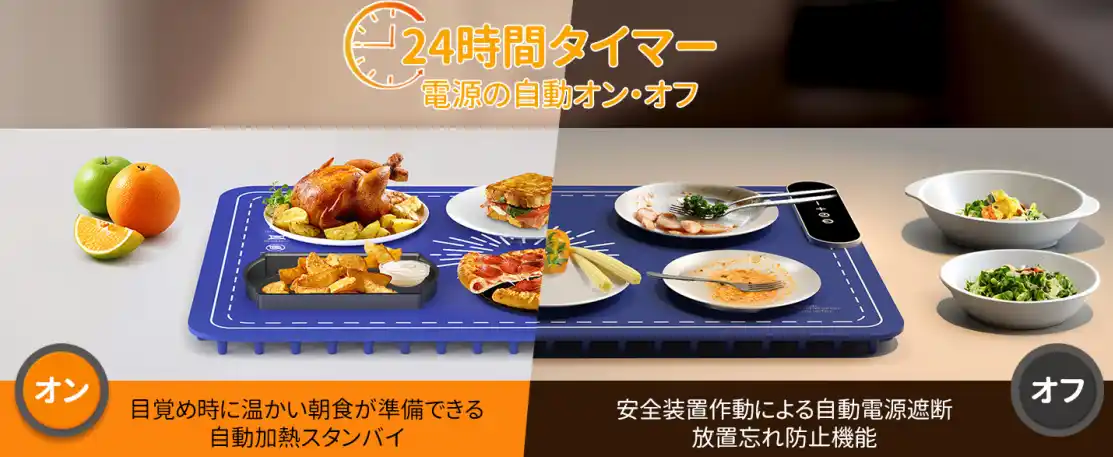 Aeemrnの食品温暖化マットは、最大30種類のタイマー設定と自動オン/オフ機能を搭載。 前日に設定しておけば、朝起きてすぐに温かい朝食を味わうことができます。 さらに、チャイルドロック機能により小さなお子様の誤操作を防ぎ、安全性にも配慮しています。 |