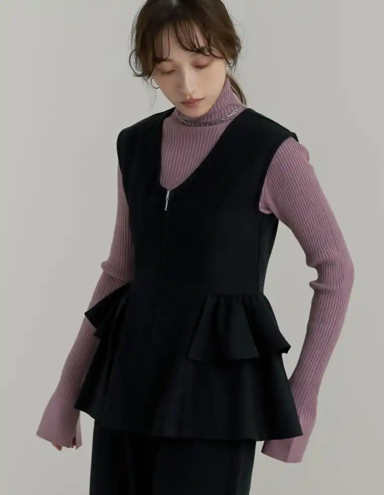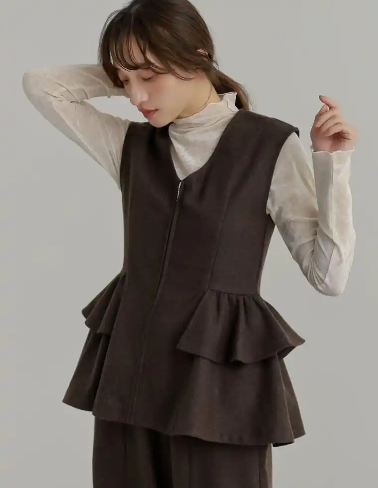 ウエストフリルとジップデザインがポイントのペプラムベスト。 |