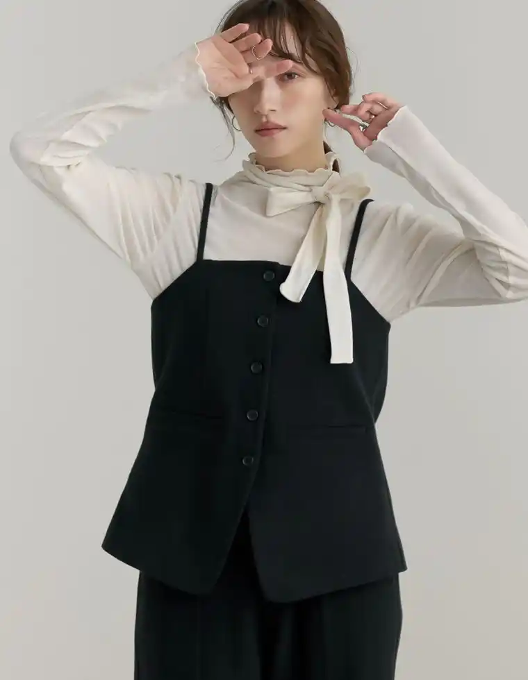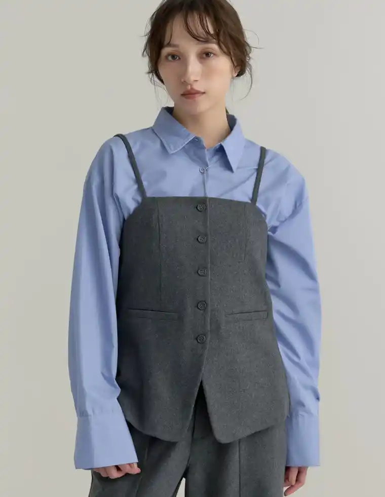 圧縮ウールライクフロントボタンキャミソールビスチェ |