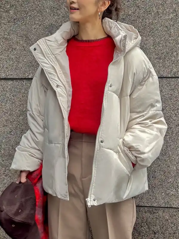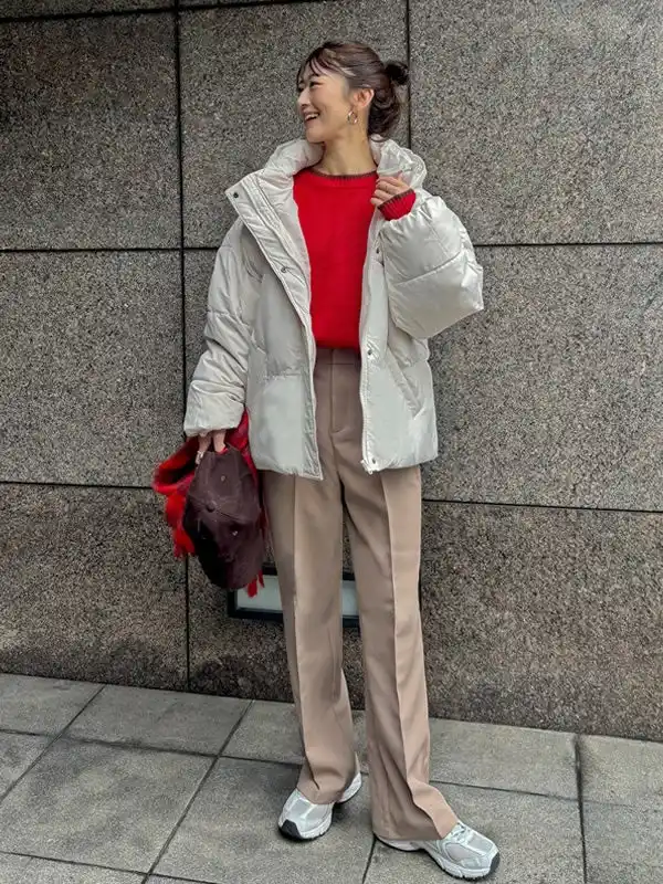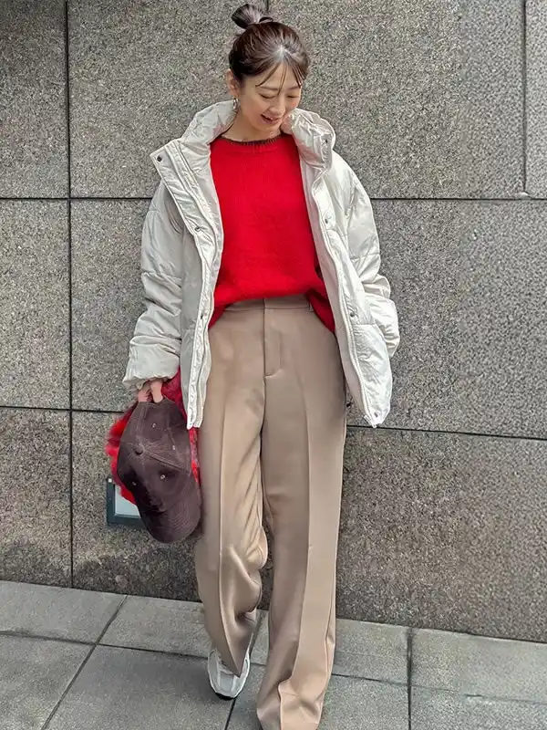 ダウンコートをきれいめに着用したく、スラックス合わせに。 |