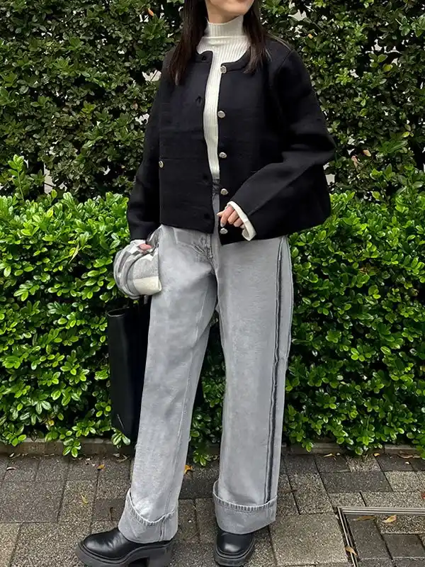 秋冬に欠かせないモノトーンですが、重くなりすぎないようにインナーとボトムは明るめカラーで、 |