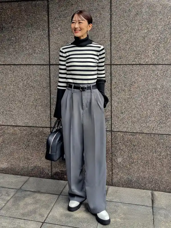 ニットも軽くインすることでスタイルアップ効果になります。 |