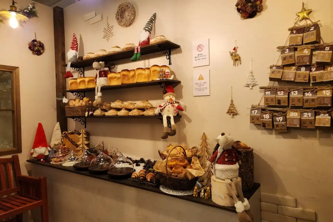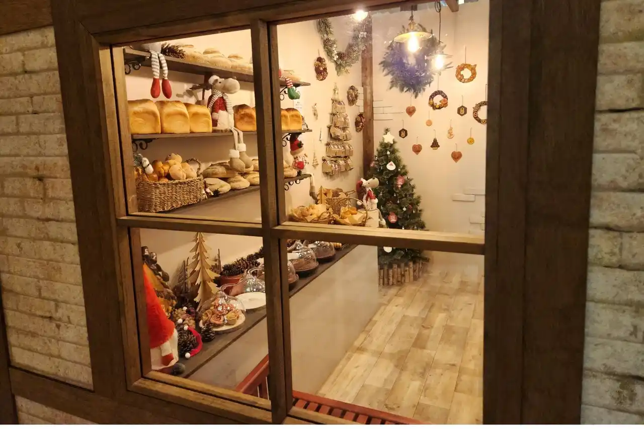 装飾の中に入り込むことができるクリスマス限定のフォトスポットです。クリスマスツリーの隣に佇むブーランジュリーには、イミテーションのパンやケーキが賑やかに並び、華やかな雰囲気の中で写真撮影をお楽しみいただけます。 |