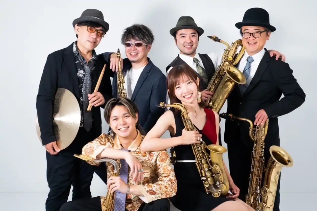 「“FUN!”Fare」にふさわしい、ストリート・ジャズ・サックス・アンサンブルバンドのステージ。 |