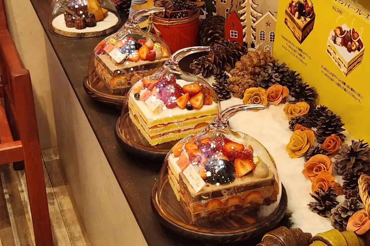 ご予約受付中のクリスマスケーキを並べています(品川プリンスホテル) |
