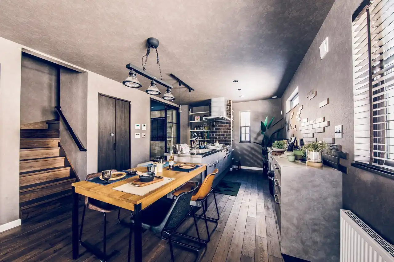 インダストリアル×グレーをベースにした落ち着いた雰囲気に、アメカジらしい素材を加え、大人の遊び心を絶妙に表現。 男前すぎず、やりすぎずのちょうどいい世界観が、家族みんなに馴染む空気をつくり出します。 |