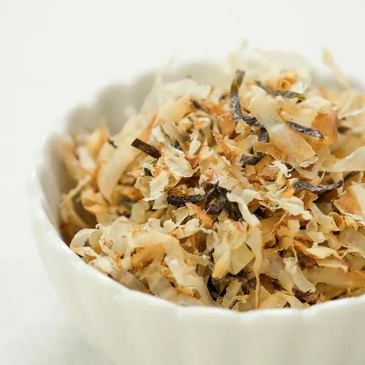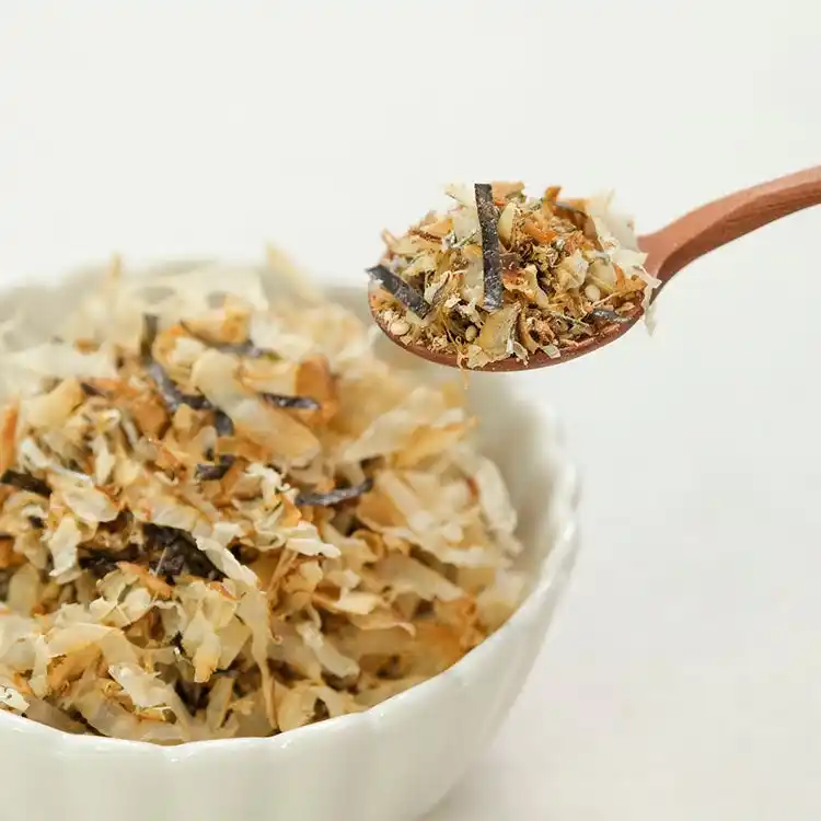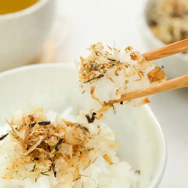 「国産のいわし節、のり、北海道産の厚葉刻み昆布など、素材そのものの香りや食感をいかしたふりかけです。いわし節の香ばしさと昆布の旨み、のりの軽やかな風味が調和し、食卓を豊かに彩ります。」 |