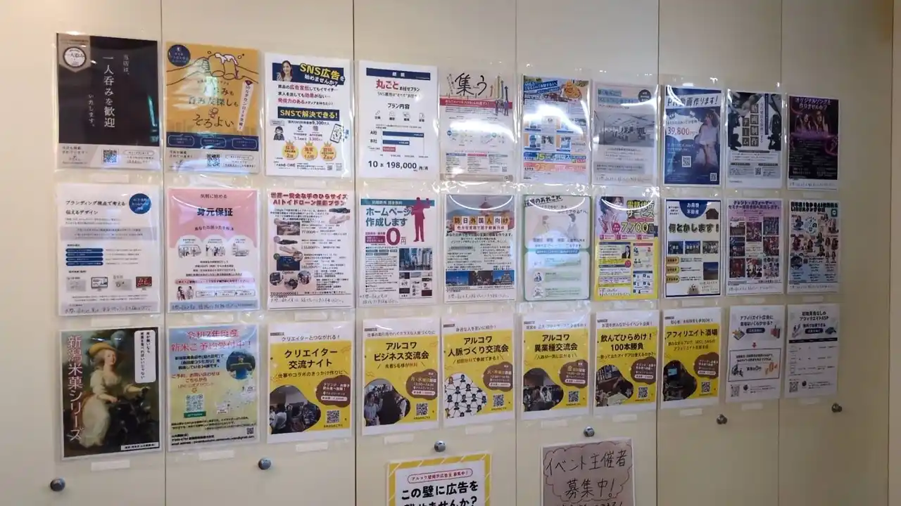 | 当店の壁に、チラシやポスターを貼れます(A4サイズ、1ヶ所)。 | ||||||||||||||||||