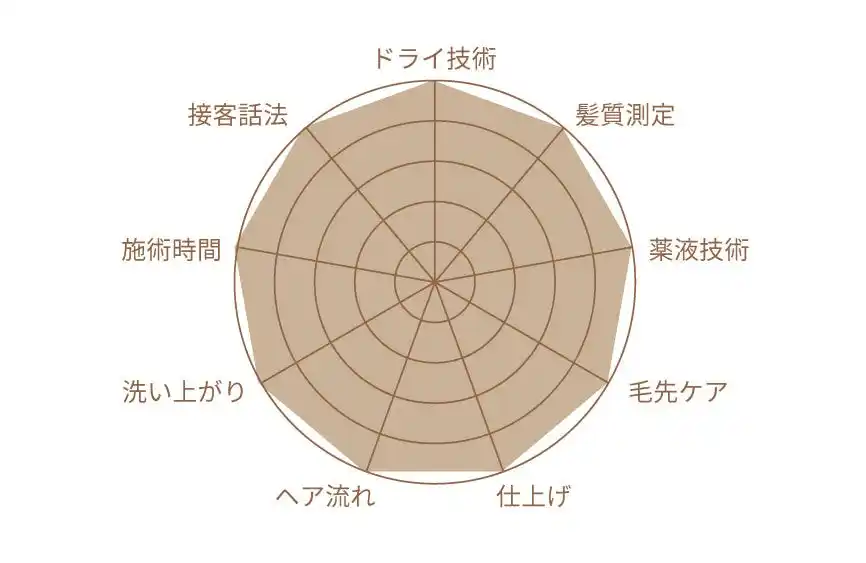 ・毛先ケア技術 毛先5cmまでケアできているか。毛先がチリついていないか。 |
