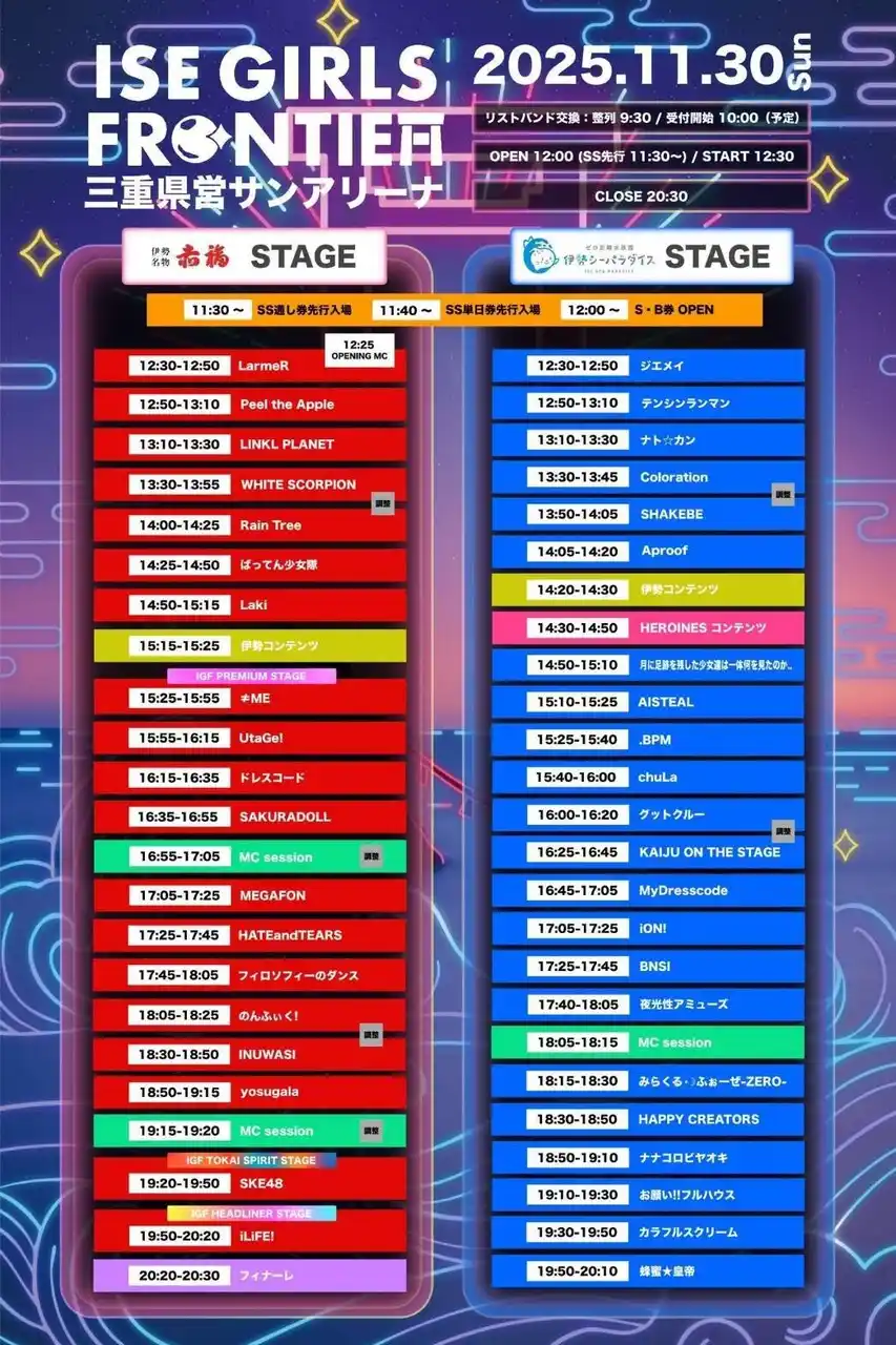 | ◆『ISE GIRLS FRONTIER』公式サイト・タイムスケジュール | ||||||||||||||