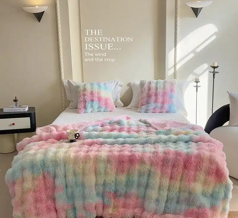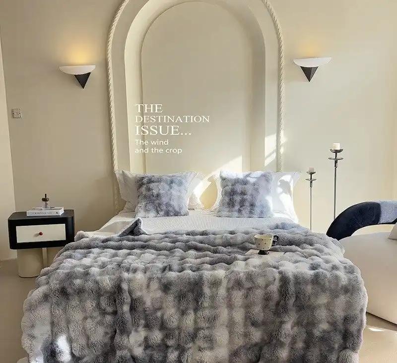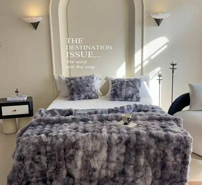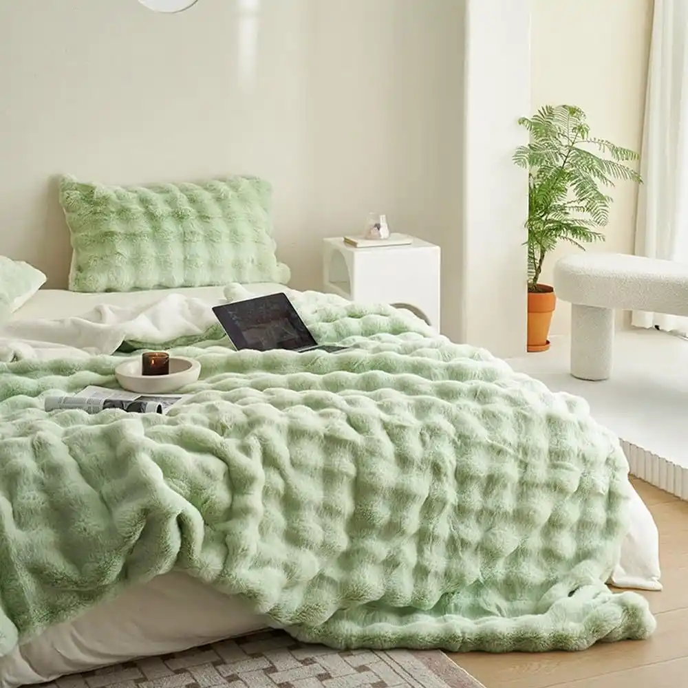 表はもこふわのラビットファー調、裏はしっとりフランネル 6サイズ100*160cm、130*160cm、140*200cm、160*200cm、180*200cm、220*200cm 暖かい 厚手 ボリューム感 トスカ泡絨 洗濯可 静電気防止 冷え対策 もうふ |