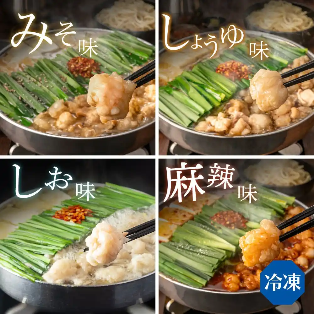 「博多もつ鍋おおやま」では、九州産を中心とした国産牛の小腸を用いたもつ鍋を提供。店舗では〈みそ/しょうゆ/水炊き風(にんにく不使用)〉の3種を基本に、通販では〈濃厚みそ/しょうゆ/しお(ネット限定)/麻辣〉などのラインアップを展開しています。 |