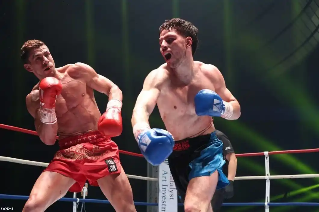| 第10試合では、現在4連勝中でフライ級王者として勢いに乗る 大久保琉唯 が、中国武林風の実力者 ウー・ユートン(中国) に対し、開始早々から鋭いパンチと前蹴りで圧倒。最後は鋭く突き刺さる三日月蹴りが決まり、1R1分41秒のKO勝利で存在感を示しました。続く第11試合では、これまで幾度も王座を取り戻してきた レオナ・ペタス を相手に、Krush王者からK-1戦線へ駆け上がる 横山朋哉 が、強烈な左フックでダウンを奪い、最後まで攻勢を維持して 判定0-3(27-30×2、28-29)で完勝 を収めました。 | ||||||||||||||