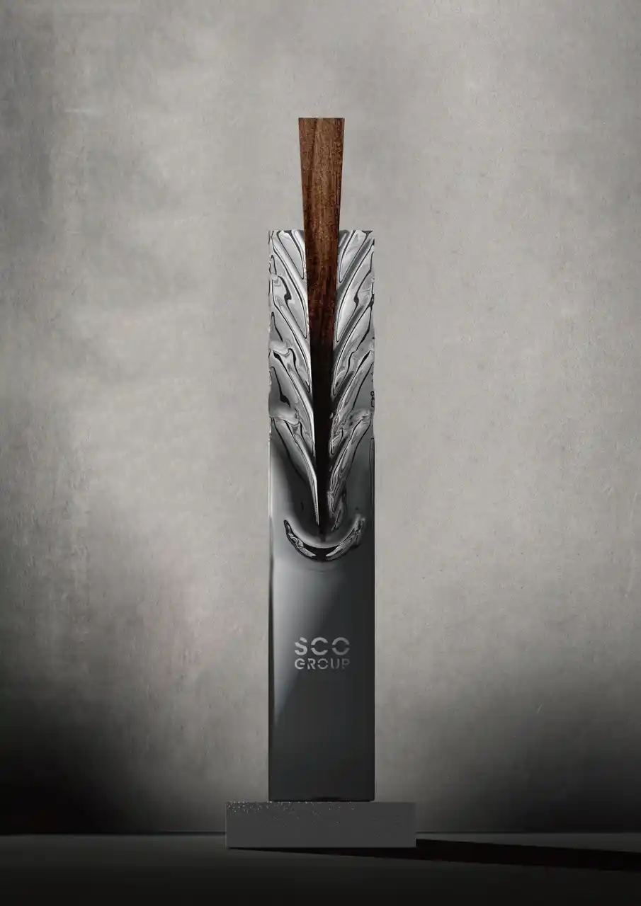 SCOグループのビジョン「テクノロジーで『105年活きる』を創造する」と、天皇杯の象徴である伝統的な意匠を融合。未来への希望と伝統ある大会の重みを、シンプルながらも印象に残る配色とデザインで表現しています。 |