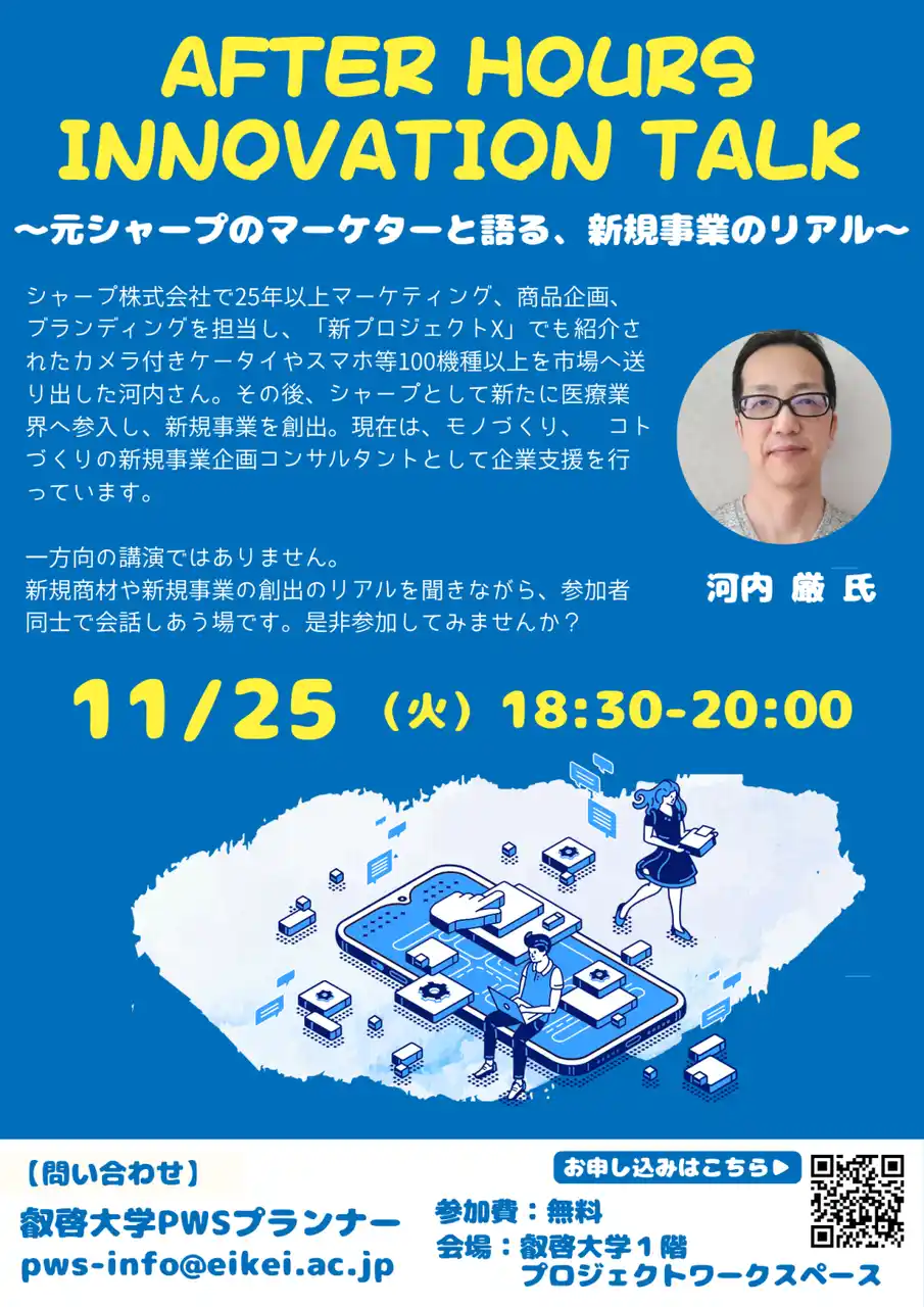 【叡啓大学】参加者募集!11月25日(火) PWS月次イベント「After Hours Innovation Talk ~元シャープのマーケターと語る、新規事業のリアル~」