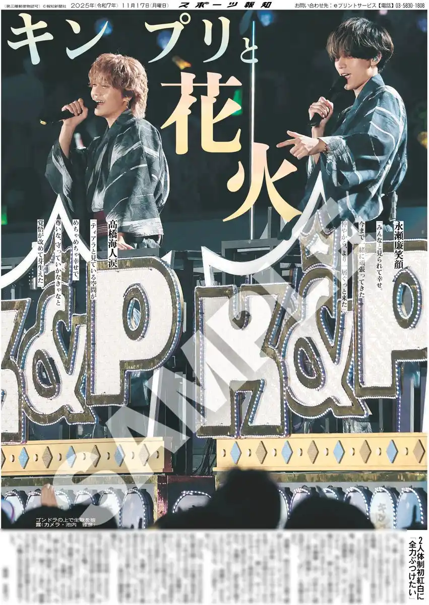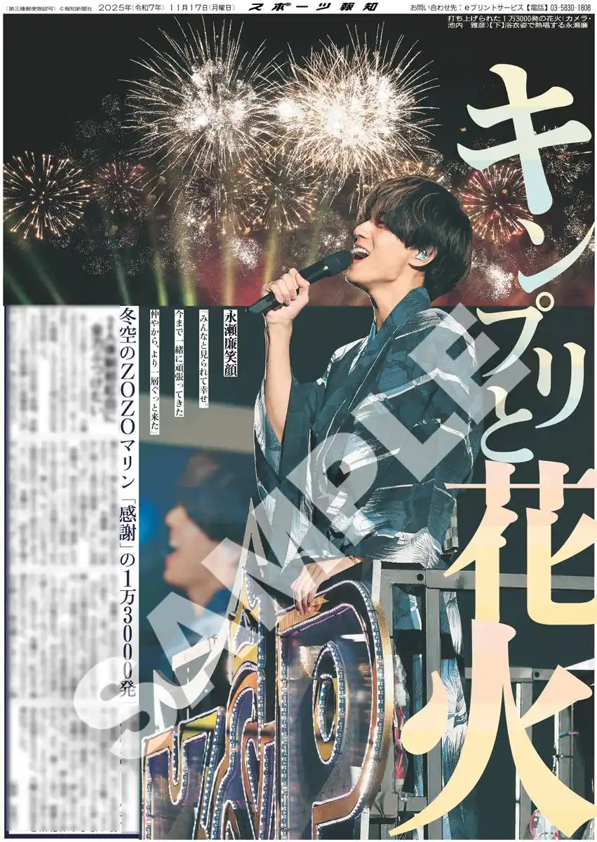 | スポーツ報知を発行する報知新聞社(代表取締役社長・長谷川剛)は新聞の一部紙面をコンビニエンスストアのマルチコピー機からプリントできる「スポーツ報知コンビニプリント」サービスを展開中。スポーツ紙ならではの大きな写真を使った紙面をプリント版として販売しています。新たに11月17日付掲載、King&Princeが「King&Princeとうちあげ花火2025」を開催した模様を伝える紙面を発売中です。全4種類になります。 | |||
